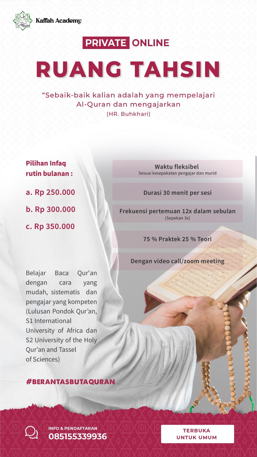 Metode Belajar. 75% Praktek 25% Teori dengan menggunakan buku Shahibut Tilawah yang disusun oleh Ustadz Arham Bin Ahmad Yasin, Lc., MH. Pemegang sanad ke 33 dari Rasulullah shallallahu ‘alaihi wa sallam dengan Riwayat Hafsh dari ‘Ashim dari jalur syathibiyyah.